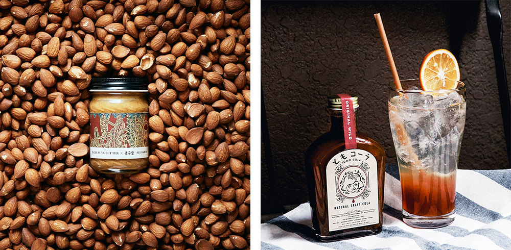 (Lower right) The original natural craft cola "Tomo Cola" made from spices around the world, including cola nuts and nutmeg, and Japanese herbs and domestic citrus fruits.