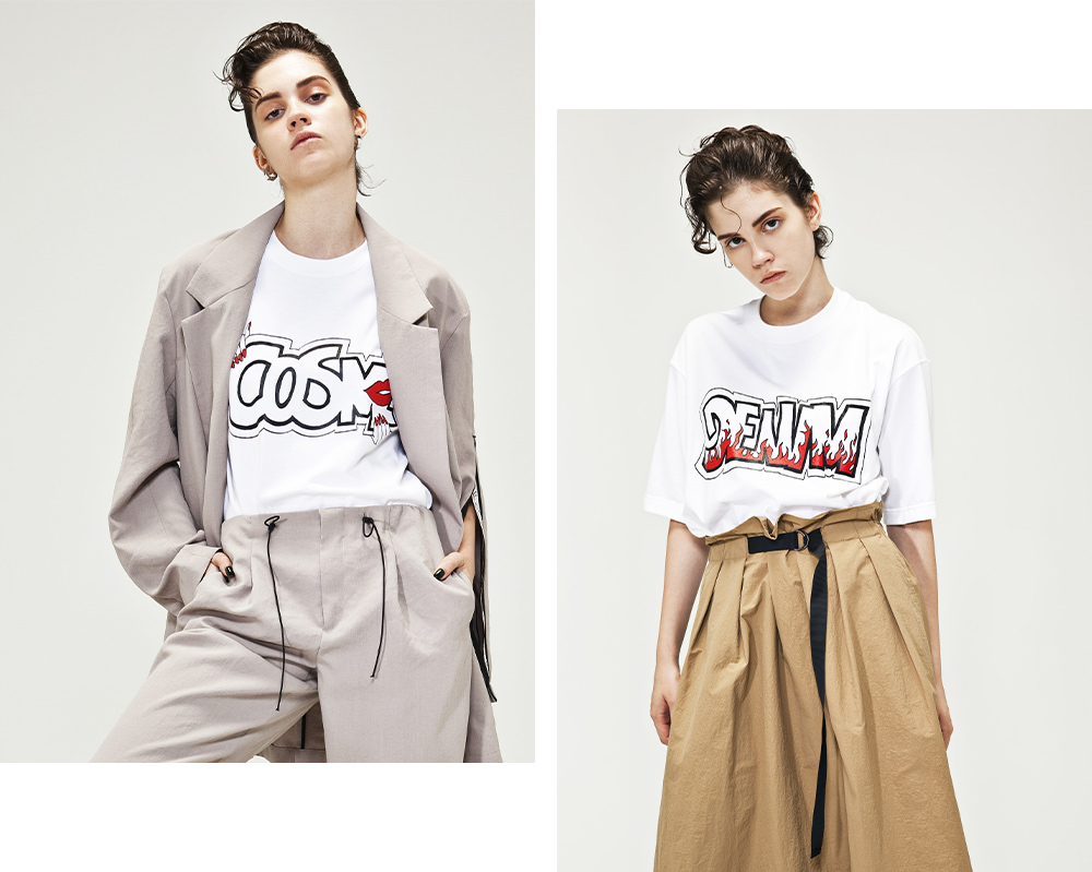 The T-shirt series, which symbolizes the brand concept of “functional beauty”, uses cosme repellent material that prevents foundation dirt on the neck. This fabric, which plays water and oil by water repellent and oil repellent processing, has excellent durability, and even after washing 20 times, it maintains its performance and effect. Graphics such as WATER and COSME depicting the original functional materials of the brand are also covered in the wit.